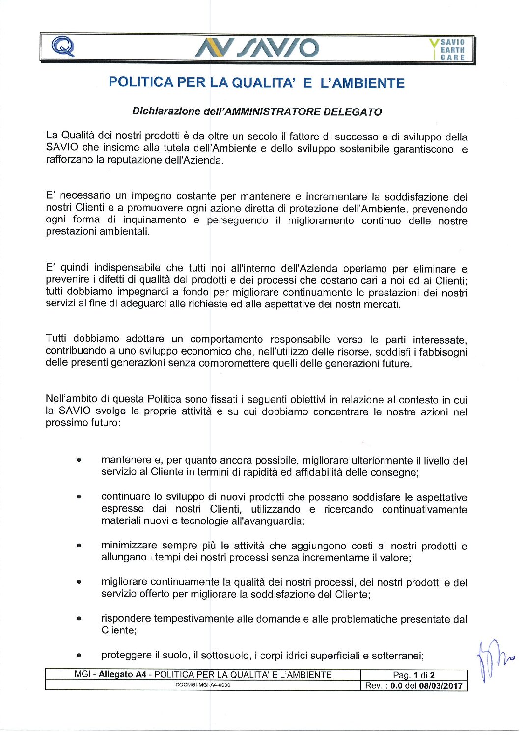 Savio ha a cuore la sostenibilità Savio Group si unisce alle aziende provenienti da 160 paesi nel mondo che hanno aderito al United Nations Global Compact (UNGC) il patto mondiale delle Nazioni Unite che incoraggia le aziende a promuovere attivamente i principi di condotta etica e di business responsabili. L’adesione al Global Compact impegna Savio…