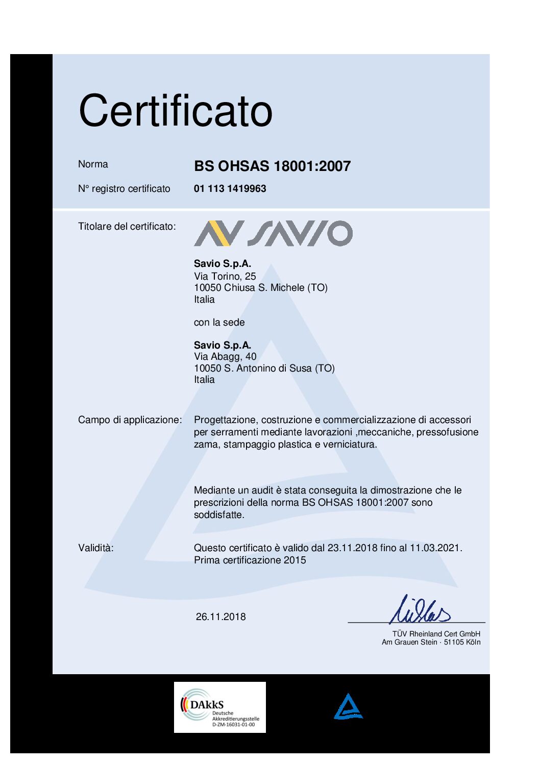 A novembre 2015, Savio ha superato l’esame di certificazione secondo lo standard OHSAS 18001:2007, che riguarda i sistemi di gestione della sicurezza sul lavoro (l’acronimo sta per Occupational Health and Safety Assessment Series). Un risultato importante, che ha coinvolto gran parte delle funzioni in azienda e ha richiesto un impegno davvero notevole, confermando l’attenzione della…