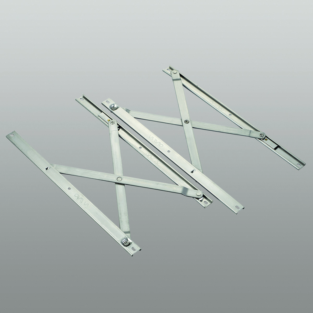 Paar parallel öffnende Scheeren, Länge 16″ (400 mm), aus austenitischem (nicht magnetischem) AISI 304 Edelstahl, Reibungskraft durch Madenschraube einstellbar, Öffnungsweite 200 mm. Tragkraft 42 Kg. Verwendbar bei Profilen mit einem Spaltmaß >= 21 mm.