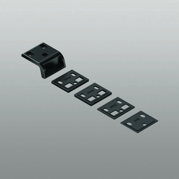 Kit Verschluß und Abstandplatten für vertikalen oder horizontalen Verschluß, bestehend aus: 1 Verschluß aus Zink-Druck-Guß mit anti bakteriellem Finish (905, 910, SLV) und 4 Abstandplatten (1 mm, 2 mm and 2 Stück a 4 mm) aus schwarzem Nylon für die Farben 905, SLV und graues oder weißes Nylon für die Farbe 910. Für die Anwendungen an PVC profilen.