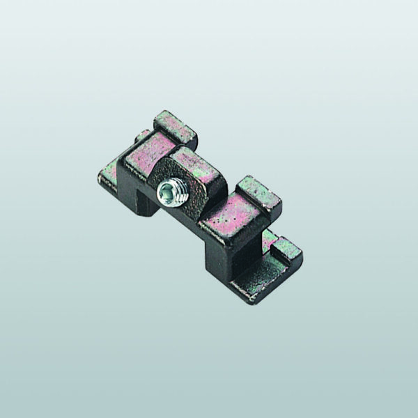 Double keeper in black galvanized zamak, 1 pre-assembled grub screw M5x10 in galvanized steel.