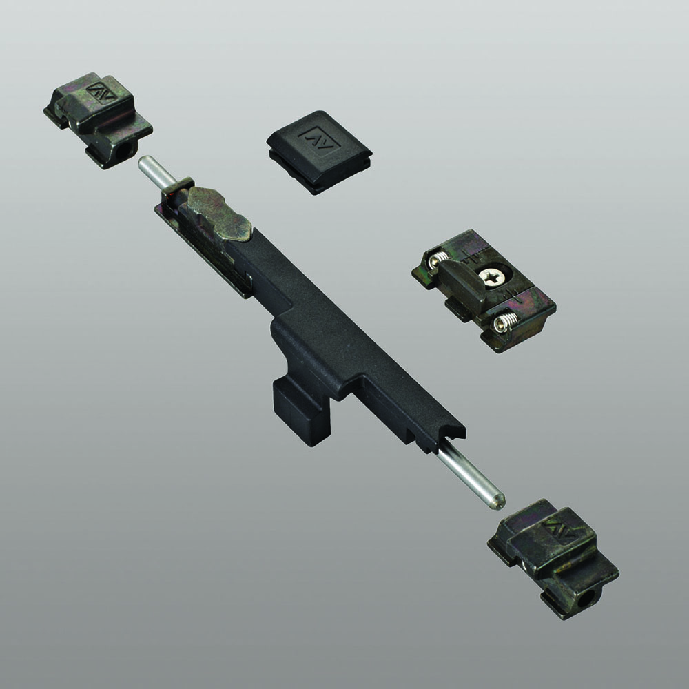 Lower bolt with keeper and support in stainless steel, nylon and black galvanized zamak, screws in stainless steel 304.