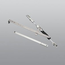 (patentado) Compás largo izquierdo maniobra tradicional, en zamac cincado blanco, nylon negro, acero inox 201 y 304, tornilleria en acero inox 304 y 430 premontada, pletina premontada en aluminio anodizado y alargo telescopico en zamac cincado blanco.