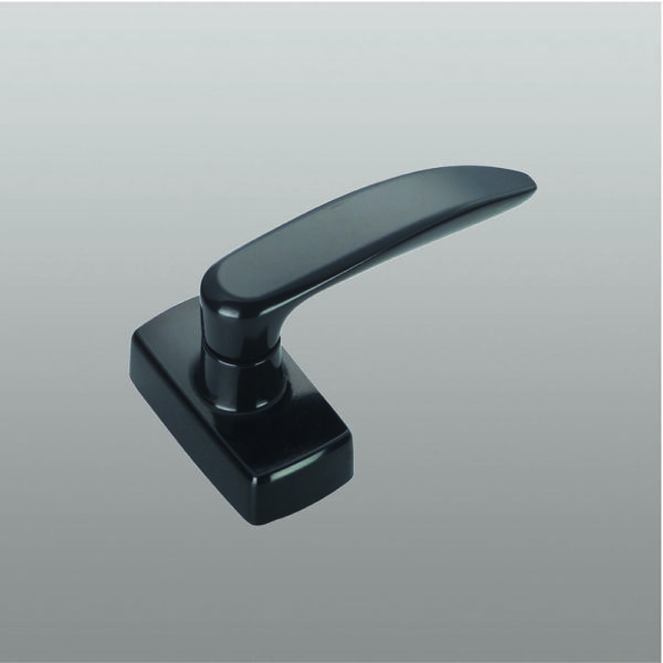 Ensemble extérieur, en zamak laqué et acier zingué, poignée en aluminium injecté laqué, carré en acier zingué, 1 vis à tête cylindrique à six pans creux M5x30 et 2 vis à tête fraisée plate M5x80 en acier zingué. Disponible aussi dans la finition GREY.
