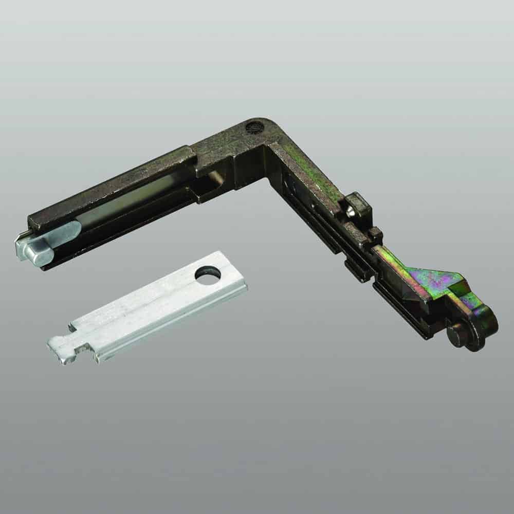 Rinvio d’angolo superiore, in alluminio e zama zincata nera.